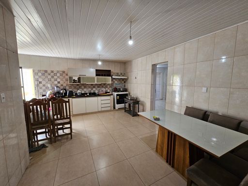 O imóvel conta com 4 quartos, sendo 3 suítes, além de 1 banheiro social na área externa. Possui cozinha com armários planejados, oferecendo praticidade e funcionalidade.
