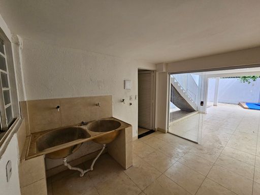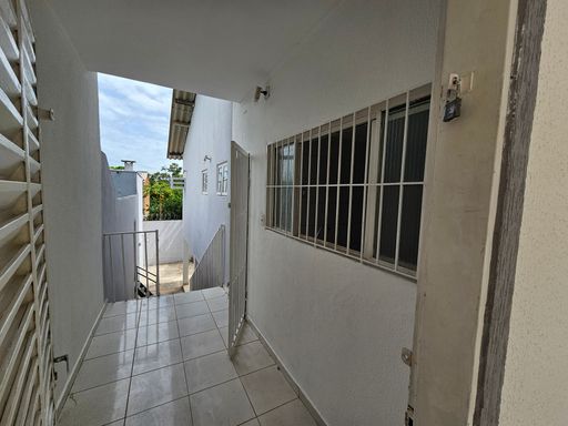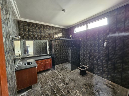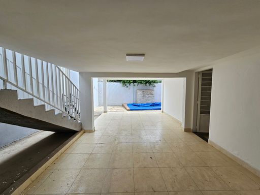 PISO INFERIOR: Acesso por escadas no corredor lateral do imóvel, são 2 quartos, 1 banheiro social e 1 salão grande que pode ser utilizado para confraternizações e treinamentos. Possuí piscina com cascata e churrasqueira.